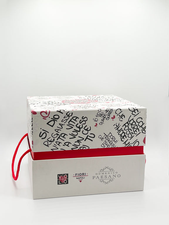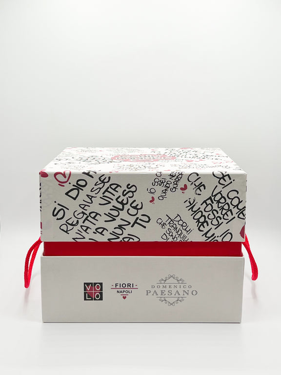 Il panettone Domenico Paesano per San Valentino, nasce da un gesto d'amore lento e profondo, con un packaging speciale realizzato in collaborazione con Volo Fiori: con le sue meravigliose frasi e dediche d'amore, le stesse che accompagnano i suoi fiori.