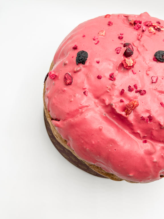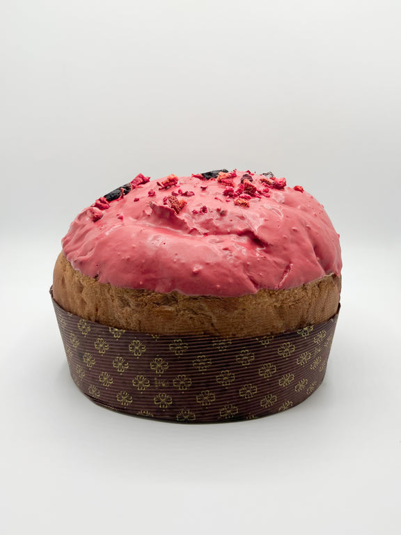 Un impasto soffice e avvolgente al cioccolato fondente, realizzato esclusivamente con lievito madre vivo, prende forma dopo lunghe lievitazioni naturali che ne esaltano profumi, leggerezza e profondità aromatica.